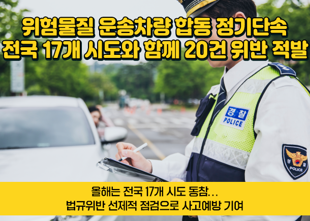 국토교통부와 한국교통안전공단은 위험물질 운송차량의 안전관리를 강화하고 사고 예방을 위해 전국 17개 시도와 합동 정기단속을 실시했다.