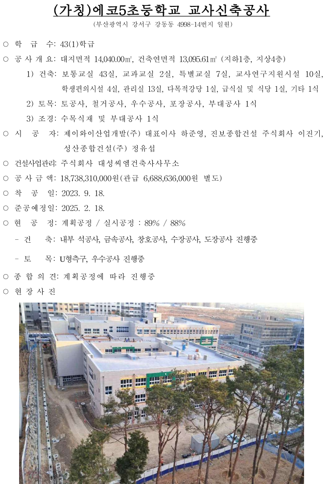 대저중앙초등학교(기존 에코5초) 개교 및 입학·전학 절차